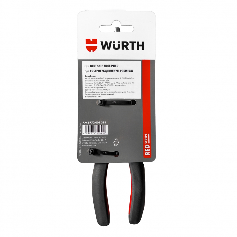 Тонкогубці вигнуті 200 mm RED STRIPE • WURTH, 5772001318