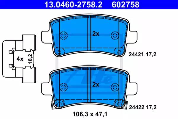 Комплект гальмівних накладок, дискове гальмо для авто від виробника ATE, який має артикул 13046027582.
