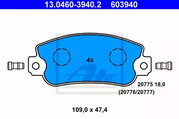 Комплект гальмівних накладок, дискове гальмо для авто від виробника ATE, який має артикул 13046039402.