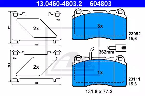Комплект гальмівних накладок, дискове гальмо • ATE, 13046048032