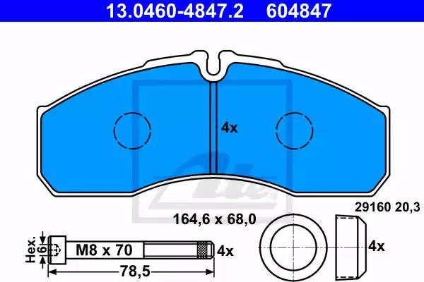 Комплект гальмівних накладок, дискове гальмо для авто від виробника ATE, який має артикул 13046048472.