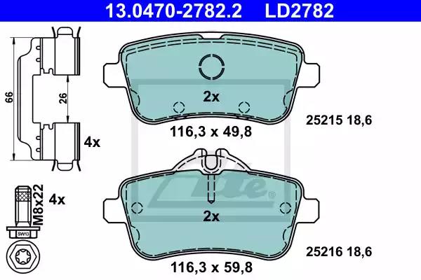 Комплект гальмівних накладок, дискове гальмо для авто від виробника ATE, який має артикул 13047027822.