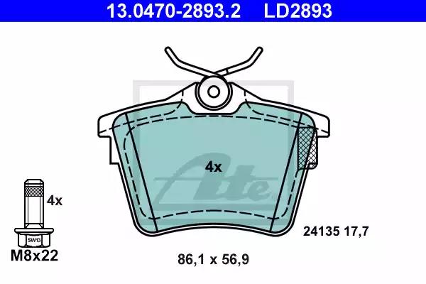 Комплект гальмівних накладок, дискове гальмо для авто від виробника ATE, який має артикул 13047028932.