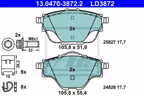 Комплект гальмівних накладок, дискове гальмо для авто від виробника ATE, який має артикул 13047038722.