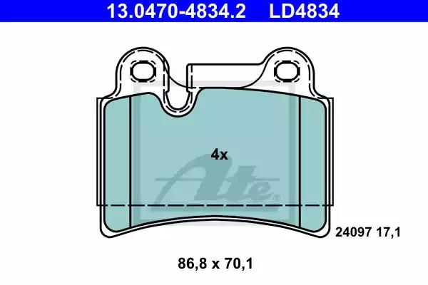 Комплект гальмівних накладок, дискове гальмо для авто від виробника ATE, який має артикул 13047048342.