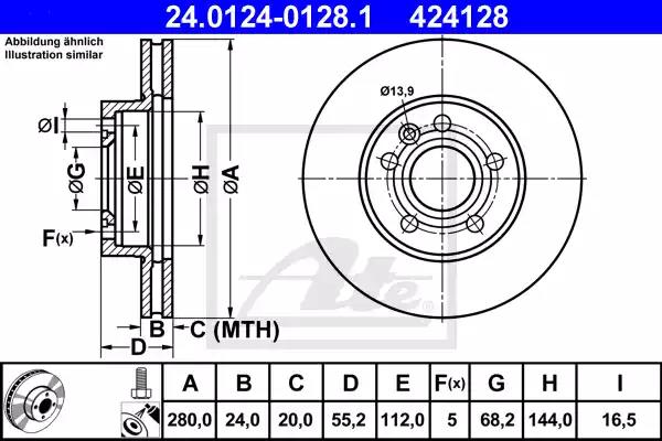 Гальмівний диск для авто від виробника ATE, який має артикул 24012401281.