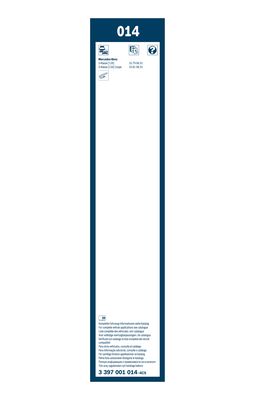 Щітка двірника від BOSCH, арт. 3397001014 може бути застосовано у таких авто: MERCEDES-BENZ S-CLASS, MERCEDES-BENZ S-CLASS Sedan, MERCEDES-BENZ S-CLASS Купе