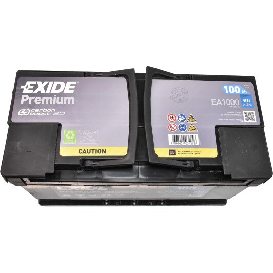 Стартерний акумулятор для авто від виробника EXIDE, який має артикул EA1000.