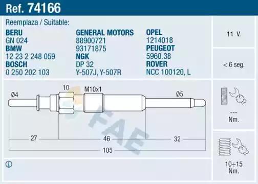 Свічка розжарювання для авто від виробника FAE, який має артикул 74166.