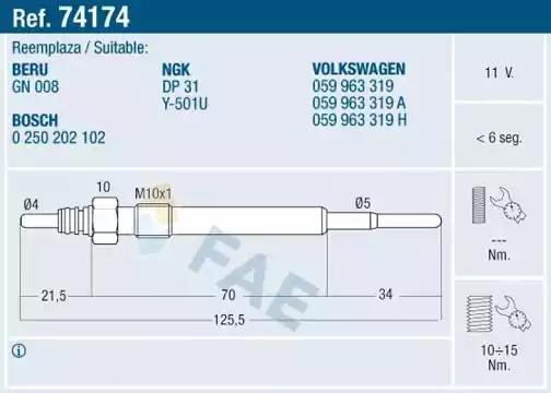 Свічка розжарювання • FAE, 74174