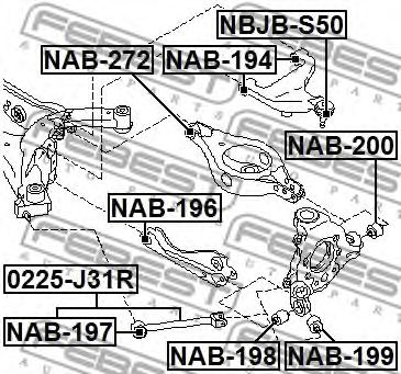 Опора, важіль підвіски від FEBEST, арт. NAB194 може бути застосовано у таких авто: NISSAN FAIRLADY 370Z Roadster, NISSAN FAIRLADY Z Купе, NISSAN FAIRLADY 370Z Купе, NISSAN ELGRAND, NISSAN QUEST, NISSAN MURANO II, NISSAN MURANO II VAN, INFINITI G Ліфтбе, NISSAN SKYLINE, NISSAN (DFAC) TEANA, NISSAN MAXIMA V, INFINITI E, NISSAN MAXIMA VII, NISSAN MURANO I, INFINITI M3, INFINITI F, NISSAN MAXIMA I, NISSAN CEFIRO I, INFINITI (DFAC) QX50, INFINITI G Куп, INFINITI G Кабріоле, NISSAN (DFAC) MURANO II, INFINITI Q40 Ліфтбе, NISSAN (DFAC) MURANO III, NISSAN SKYLINE CROSSOVER, NISSAN MURANO III, NISSAN MURANO III VAN, NISSAN FUGA I, NISSAN SKYLINE Купе