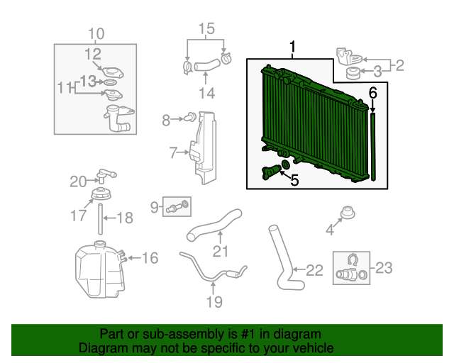 Радіатор, система охолодження двигуна для авто від виробника HONDA, який має артикул 19010RNAA51.