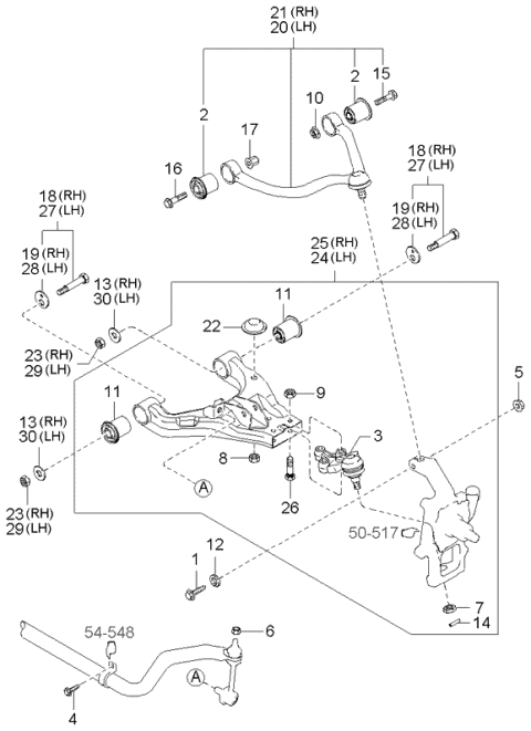 Опора, важіль підвіски від HY KI, арт. 544803E002 може бути застосовано у таких авто: KIA SORENTO I