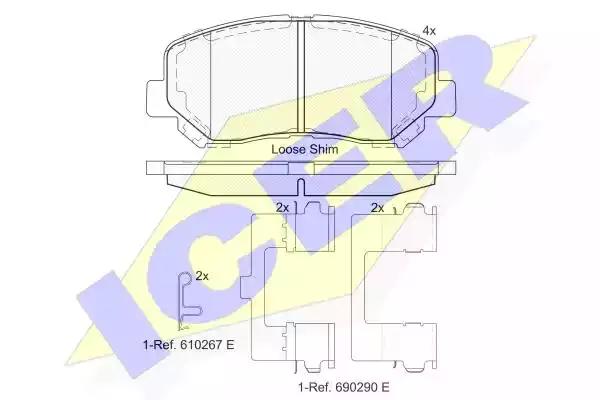 Комплект гальмівних накладок, дискове гальмо • ICER, 182055