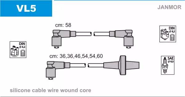 Комплект проводів високої напруги для авто від виробника JANMOR, який має артикул VL5.