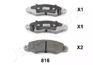 Комплект гальмівних накладок, дискове гальмо для авто від виробника JAPAN PARTS, який має артикул PA818AF.