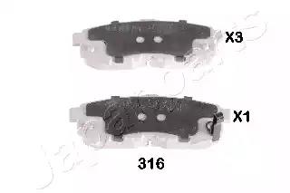 Комплект гальмівних накладок, дискове гальмо для авто від виробника JAPAN PARTS, який має артикул PP316AF.