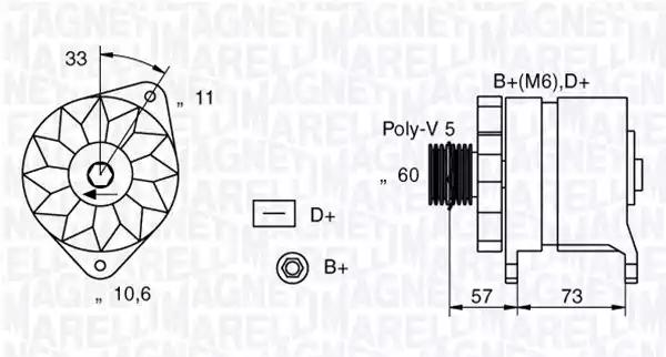 Генератор для авто від виробника MAGNETI MARELLI, який має артикул 063321156010.