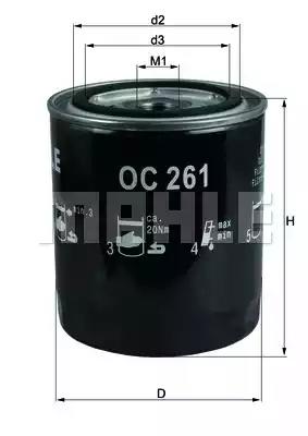Оливний фільтр для авто від виробника MAHLE KNECHT, який має артикул OC261.