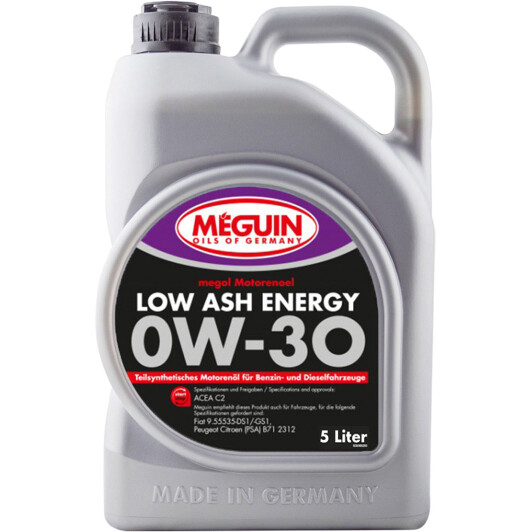 Моторна олива Meguin Low Ash Energy, 0W-30, 5л для авто від виробника MEGUIN, який має артикул 33064.