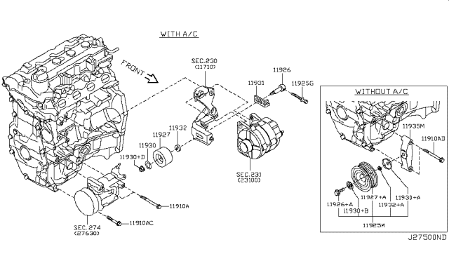 Відвідний/напрямний ролик, поліклиновий ремінь для авто від виробника NISSAN, який має артикул 119271HC0A.