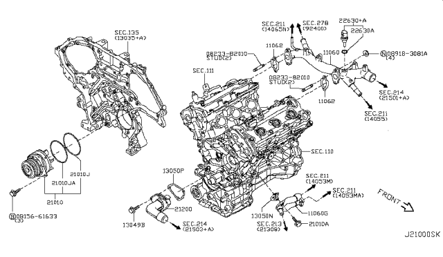 Насос охолоджувальної рідини, охолодження двигуна • NISSAN, 21010JK00A