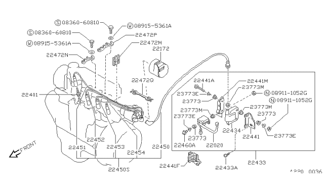 Комплект проводів високої напруги для авто від виробника NISSAN, який має артикул 2245036A25.