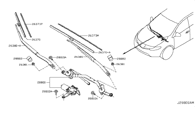 Щітка двірника для авто від виробника NISSAN, який має артикул 288901AA0A.