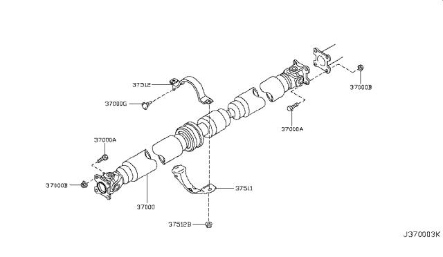 Карданний вал, головна передача для авто від виробника NISSAN, який має артикул 37000CB00A.