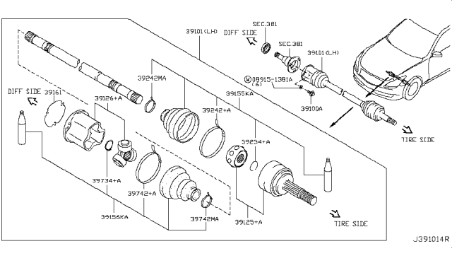 Комплект пилозахисний, приводний вал для авто від виробника NISSAN, який має артикул 3974105U89.