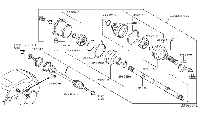 Гофрований кожух, приводний вал для авто від виробника NISSAN, який має артикул 39741EG025.