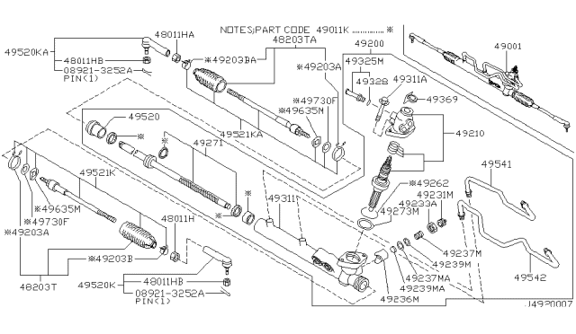 Осьовий шарнір, поперечна кермова тяга для авто від виробника NISSAN, який має артикул 485212Y485.