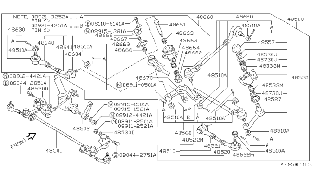 Наконечник, поперечна кермова тяга для авто від виробника NISSAN, який має артикул 48641G5101.