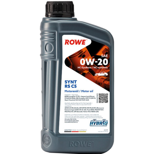 Моторна олива Rowe Synt RS C5, 0W-20, 1л для авто від виробника ROWE, який має артикул 20379001099.