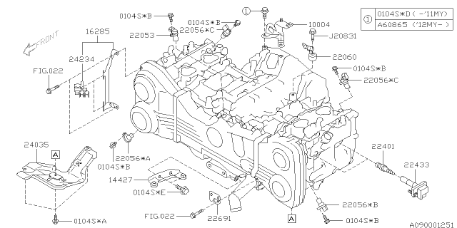 Свічка запалювання для авто від виробника SUBARU, який має артикул 22401AA730.