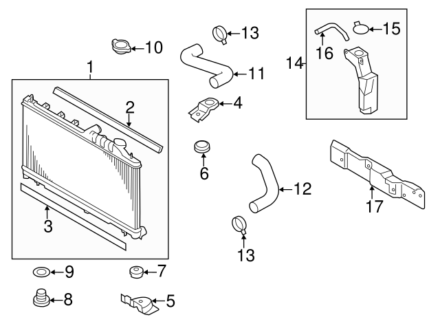Радіатор, система охолодження двигуна для авто від виробника SUBARU, який має артикул 45119FG040.