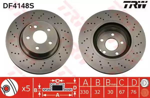 Гальмівний диск для авто від виробника TRW, який має артикул DF4148S.