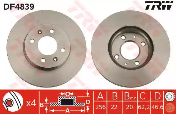 Гальмівний диск для авто від виробника TRW, який має артикул DF4839.