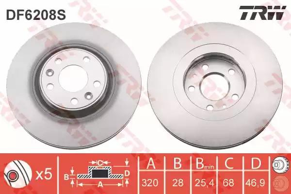 Гальмівний диск для авто від виробника TRW, який має артикул DF6208S.