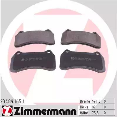 Комплект гальмівних накладок, дискове гальмо для авто від виробника ZIMMERMANN, який має артикул 234891651.