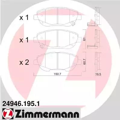Комплект гальмівних накладок, дискове гальмо для авто від виробника ZIMMERMANN, який має артикул 249461951.