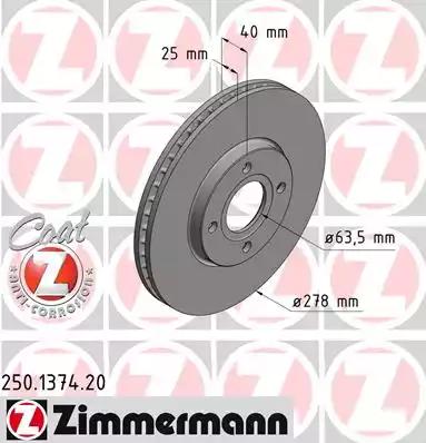 Гальмівний диск для авто від виробника ZIMMERMANN, який має артикул 250137420.